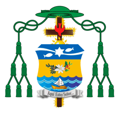La paloma de gules estilizada que desciende significa la unción del Espíritu Santo que, con la plenitud de su poder, consagra al obispo por el Sacramento del Orden. Si todos los sacramentos son obra suya, con mayor razón el del Sacramento del Orden, que Unge, Consagra y Envía. Todo mediante la efusión y la acción del Espíritu Santificador.