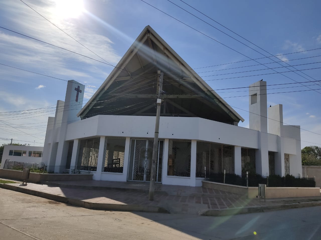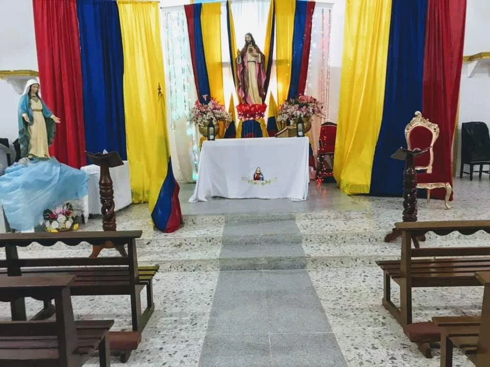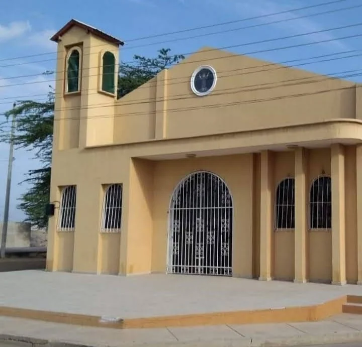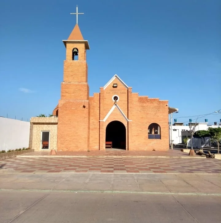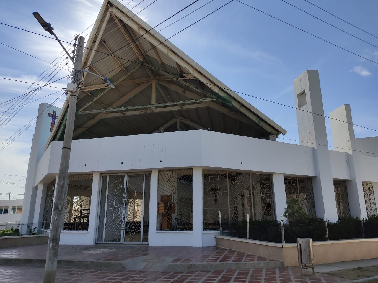 escuela en vez de una de una iglesia católica, fue cuando las personas que lideraban la construcción reunieron al resto de la comunidad católica para impedir que las actividades y los recursos que se recaudaran fueran para un escuela y se terminara la iglesia que la comunidad deseaba, decidieron buscar en la comunidad personas con conocimiento en construcción e iniciaron a fabricar los bloques en la cancha del barrio los días de semana y el sábado se instalaban en el templo hasta que alcanzo el alto de viga, posterior a esto se hicieron varias visitas al obispo para solicitarle un sacerdote para iniciar dando misas el obispo les dijo que convencieran al sacerdote de la iglesia Nuestra Señora del Carmen el Presbítero RAFAEL SIERRA, el cual estuvo muy reacio a realizar estas misas porque este sector se había independizado del barrio el Carmen, después de otras visitas al obispo nuevamente les insistió que hablaran con el Padre Sierra, la señora Idamis se dirigió hasta donde él fue entonces cuando accedió a realizar las misas todos los domingos debajo del trupillo que está al lado del templo.