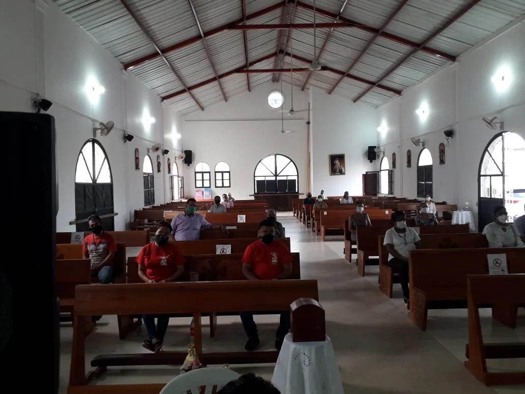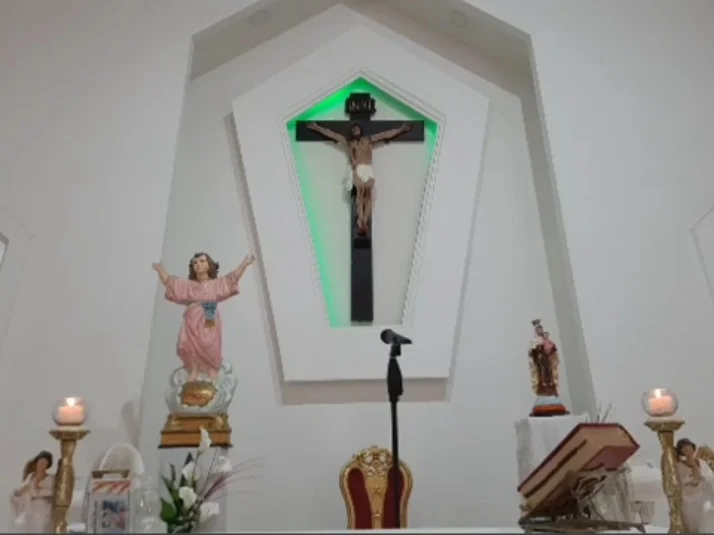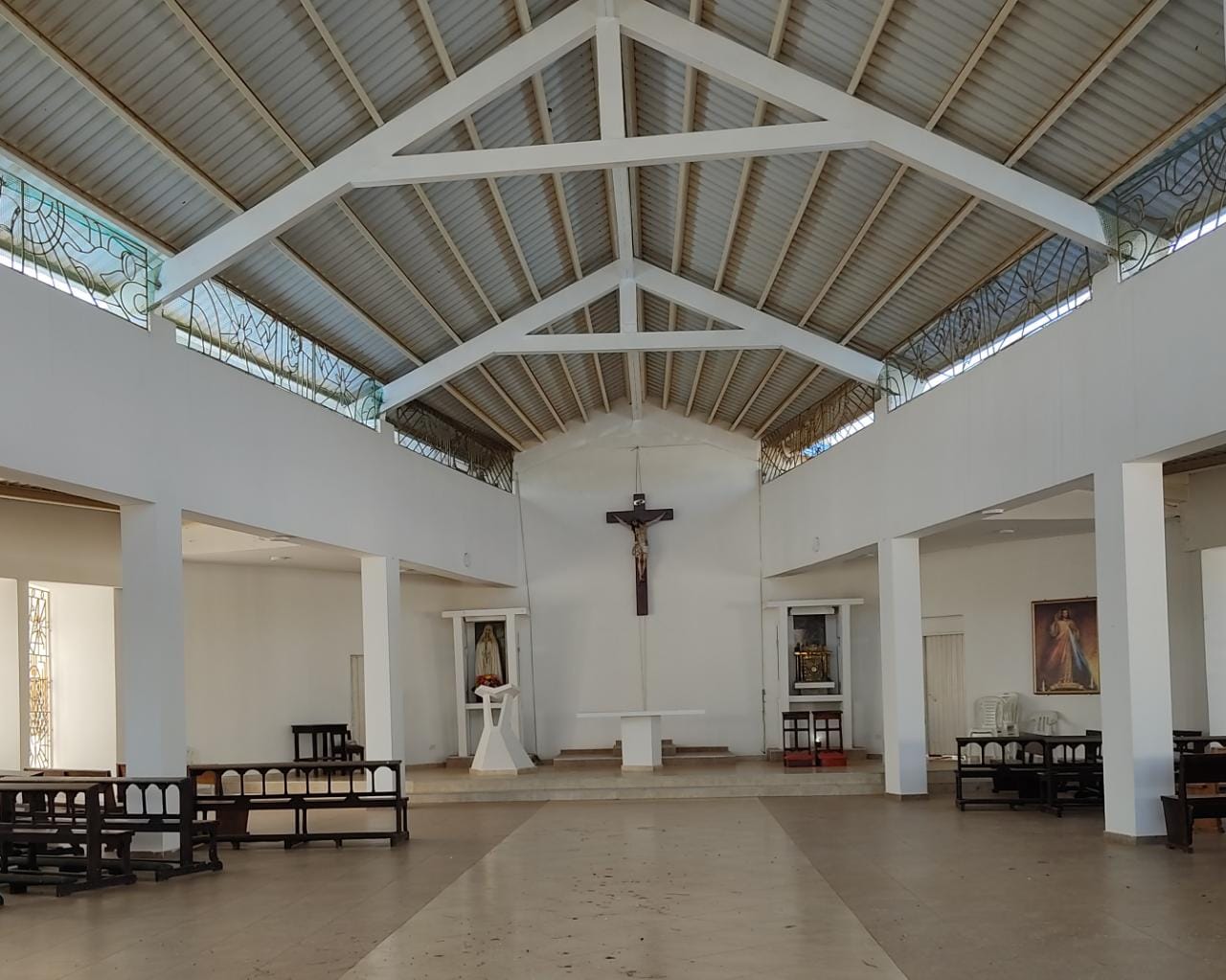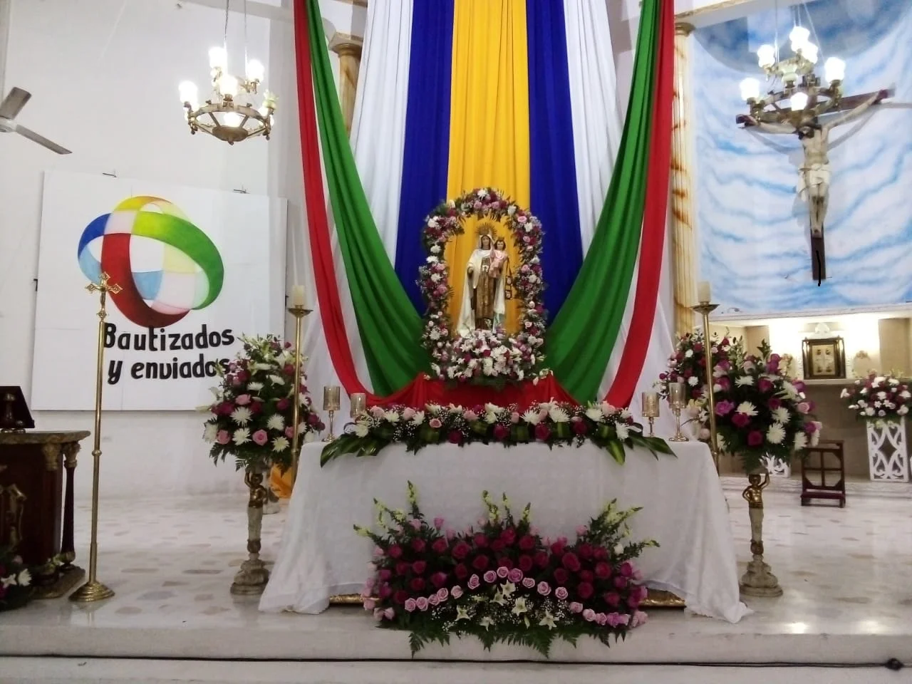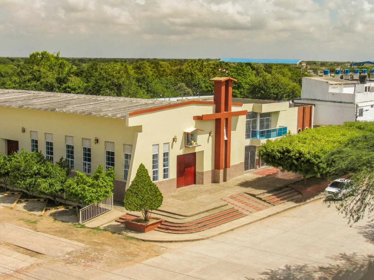 escuela en vez de una de una iglesia católica, fue cuando las personas que lideraban la construcción reunieron al resto de la comunidad católica para impedir que las actividades y los recursos que se recaudaran fueran para un escuela y se terminara la iglesia que la comunidad deseaba, decidieron buscar en la comunidad personas con conocimiento en construcción e iniciaron a fabricar los bloques en la cancha del barrio los días de semana y el sábado se instalaban en el templo hasta que alcanzo el alto de viga, posterior a esto se hicieron varias visitas al obispo para solicitarle un sacerdote para iniciar dando misas el obispo les dijo que convencieran al sacerdote de la iglesia Nuestra Señora del Carmen el Presbítero RAFAEL SIERRA, el cual estuvo muy reacio a realizar estas misas porque este sector se había independizado del barrio el Carmen, después de otras visitas al obispo nuevamente les insistió que hablaran con el Padre Sierra, la señora Idamis se dirigió hasta donde él fue entonces cuando accedió a realizar las misas todos los domingos debajo del trupillo que está al lado del templo.